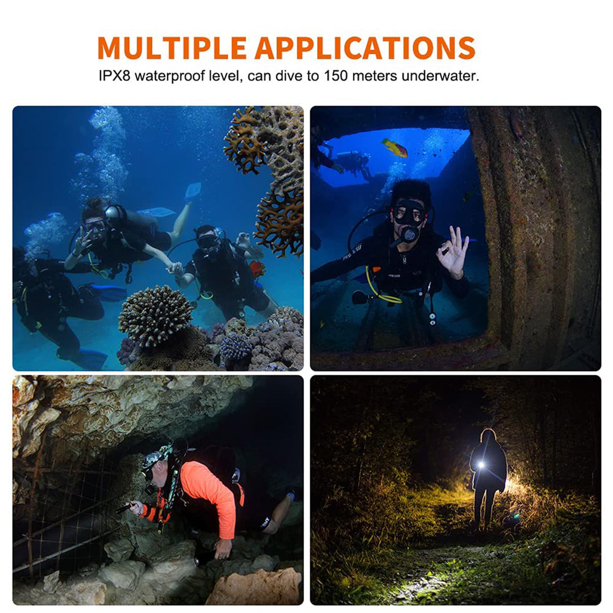 Q: Is the OrcaTorch D700 suitable for deep-sea diving?A: Yes, the D700 is designed for deep-sea diving, with an IP68 waterproof rating that allows it to withstand depths of up to 150 meters, along with robust construction using premium aluminum alloy materials.