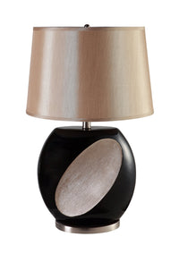 Q: Is the lamp shade included with the ORE International 31176 table lamp?A: Yes, the lamp comes with a beige circular lamp shade that measures 15.5 inches in diameter and 10.5 inches high.