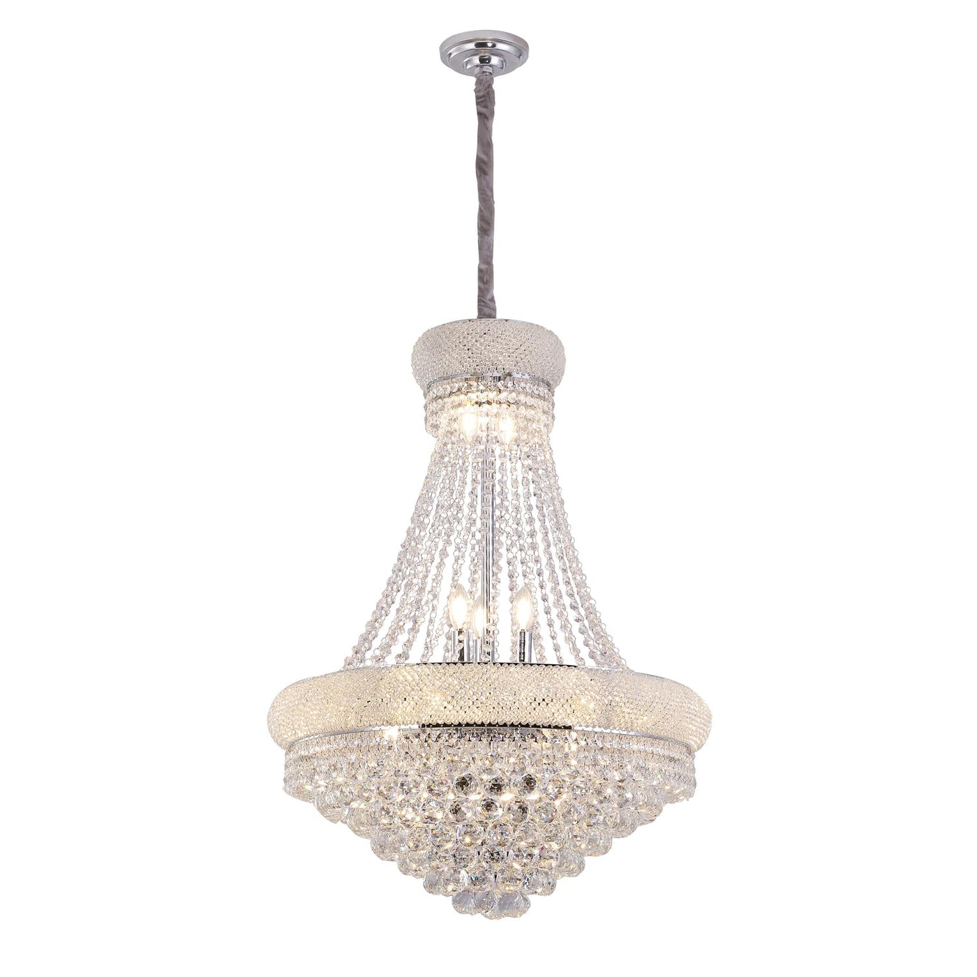 Indulge in the exquisite beauty of the Single Tier Empire Crystal Chandelier, where luxury meets practicality. With its delicate frame and captivating design, it provides an enchanting focal point for any room. Make a statement that will be remembered and cherished for years to come, and elevate your home with this radiant masterpiece.