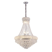 Experience the timeless allure of the UL Listed Empire K9 Crystals Single Tier Chandelier, a stunning 19th-century French-inspired masterpiece that elevates any living space with its elegance and charm. This captivating chandelier features graceful cascading crystal strands that form a bell shape, adorned with exquisite crystal octagons and a prominent crystal spear on each layer.