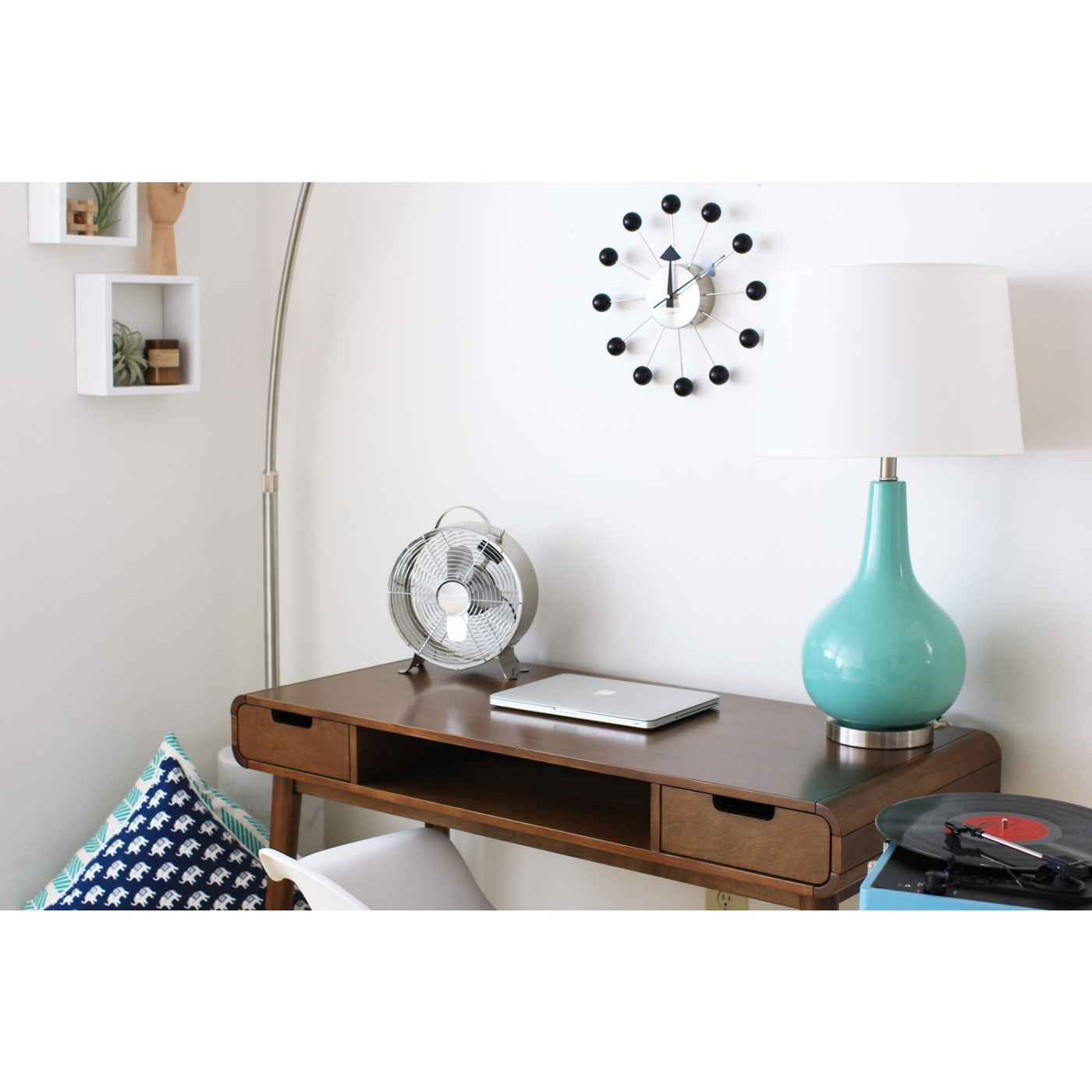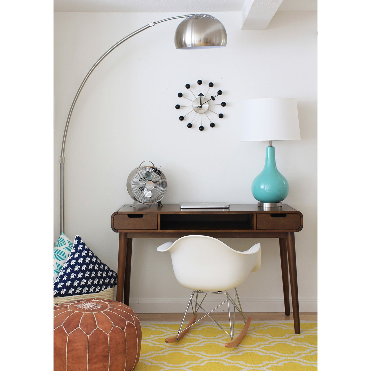 Q: Is the shade of the lamp easy to clean?A: Yes, the white linen shade of the ORE International table lamp can be easily cleaned with a soft, damp cloth to maintain its appearance.