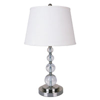From the ManufacturerThis table lamp lends a slightly retro mod style to your decor with features such as the crystal bubble accents with a brushed nickel finish and drum shaped shade.