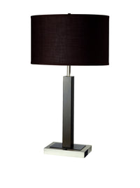 Ore International, Inc. is a wholesaler who imports Lamps, Gifts and Furniture. Our mission is to be the leading provider of innovative, high quality lighting fixtures, gift and furniture to world-wide commercial, industrial, residential and utility markets. Ore International Inc. has a total commitment to a Customer-First attitude and to being consistently superior to competitors in fulfilling customer needs. Ore International is also committed to growing profitably and to the opportunity for all employees to contribute, grow, have fun and take pride in their work. Ore International 8321ES-1 Metal Table Lamp with Convenient Outlet is a Modern style lamp made of metal and poly resin in a espresso color finish and a brown drum shaped fabric shade. The Base made of steel and matte finish. This Contemporary lighting suits all occasions. Wipe clean with a dry cloth. With a Convenient outlet on table base to connect your favorite smartphone, notebook or tablets or boom box. Easy access with On & Off Switch on table base. 68" Cord Length; 100 WT Type A bulb Or 23 WT CFL (bulb not included).