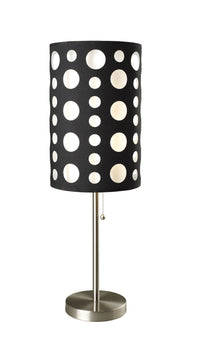 Ore International, Inc. is a wholesaler who imports Lamps, Gifts and Furniture. Our mission is to be the leading provider of innovative, high quality lighting fixtures, gift and furniture to world-wide commercial, industrial, residential and utility markets. Ore International Inc. has a total commitment to a Customer-First attitude and to being consistently superior to competitors in fulfilling customer needs. Ore International is also committed to growing profitably and to the opportunity for all employees to contribute, grow, have fun and take pride in their work. The Modern Retro Table Lamp is a contemporary and stylish table lamp that will brighten up your room with a modern touch. The two-layer shade design allows the inner layer to be detached to change the feel and mood of the lamp. The shade is made of fabric that can be easily cleaned using a damp cloth or duster. Pull-chain on-off switch and requires 100W type A bulb or 23 W CLF bulb, max 120 V (not included). Metal chrome finished frame with black and white lamp shade. Measures 16 x 16 x 33 Inch.
