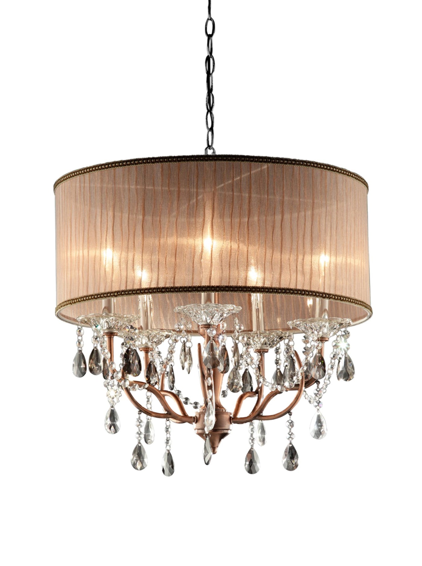 Ore International K-5126H Rosie Crystal Ceiling Lamp, 22.5" X 22.5" X 67", Rose/Copper