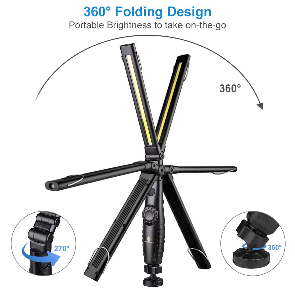 Orhomelife Rechargeable Led Work Light - 750 Lumens Foldable Led Flashlight Handheld Cordless Work Light With Magnetic Base, 360°Rotate, Power Indicator For Car Repair, Garage, Household (2 Pack)
