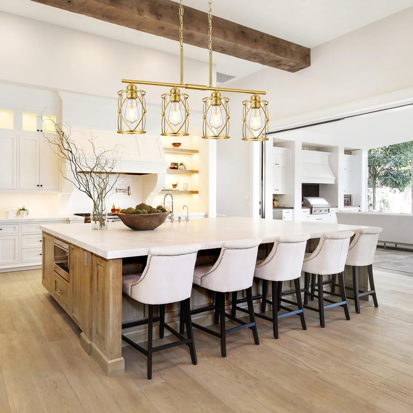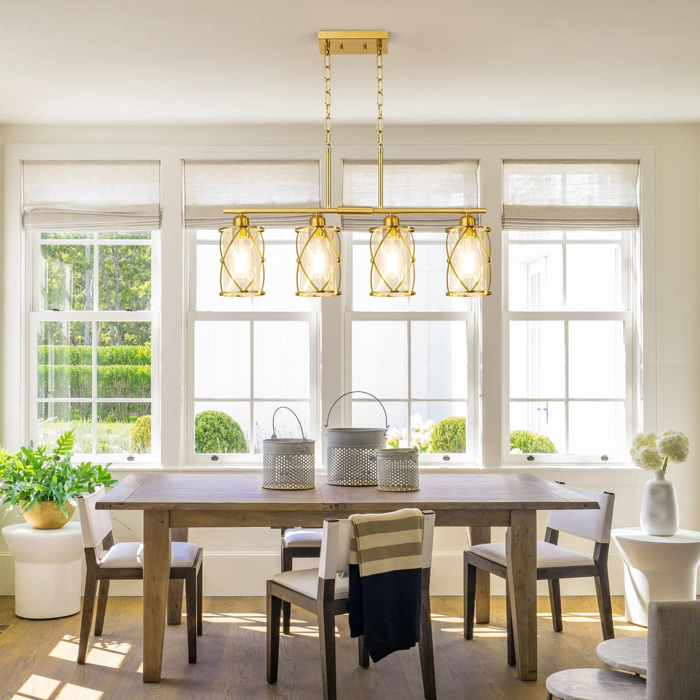 Osimir 4-Light Kitchen Island Lighting, Modern Brushed Gold Dining Room Light Fixtures With Clear Glass, Farmhouse Industrial Li