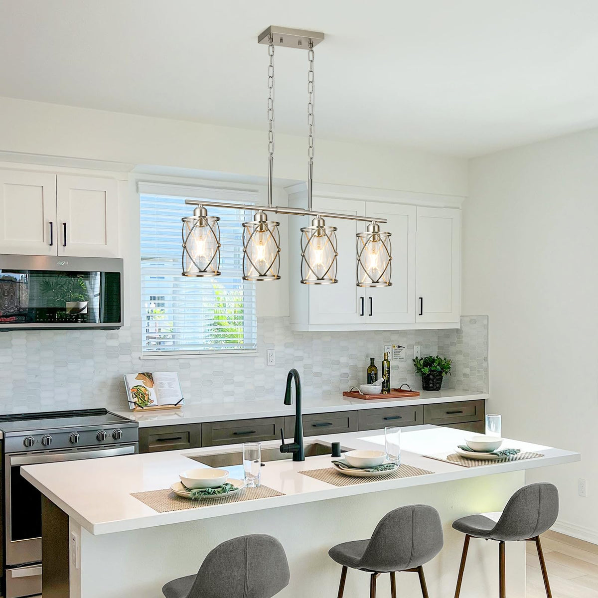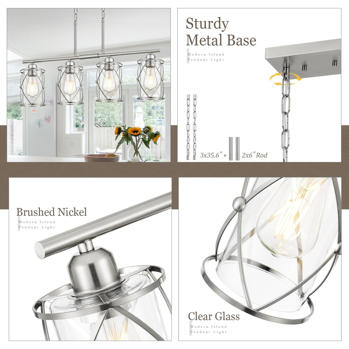 Osimir 4-Light Kitchen Island Lighting, Modern Brushed Nickel Dining Room Light Fixtures With Clear Glass, Farmhouse Industrial