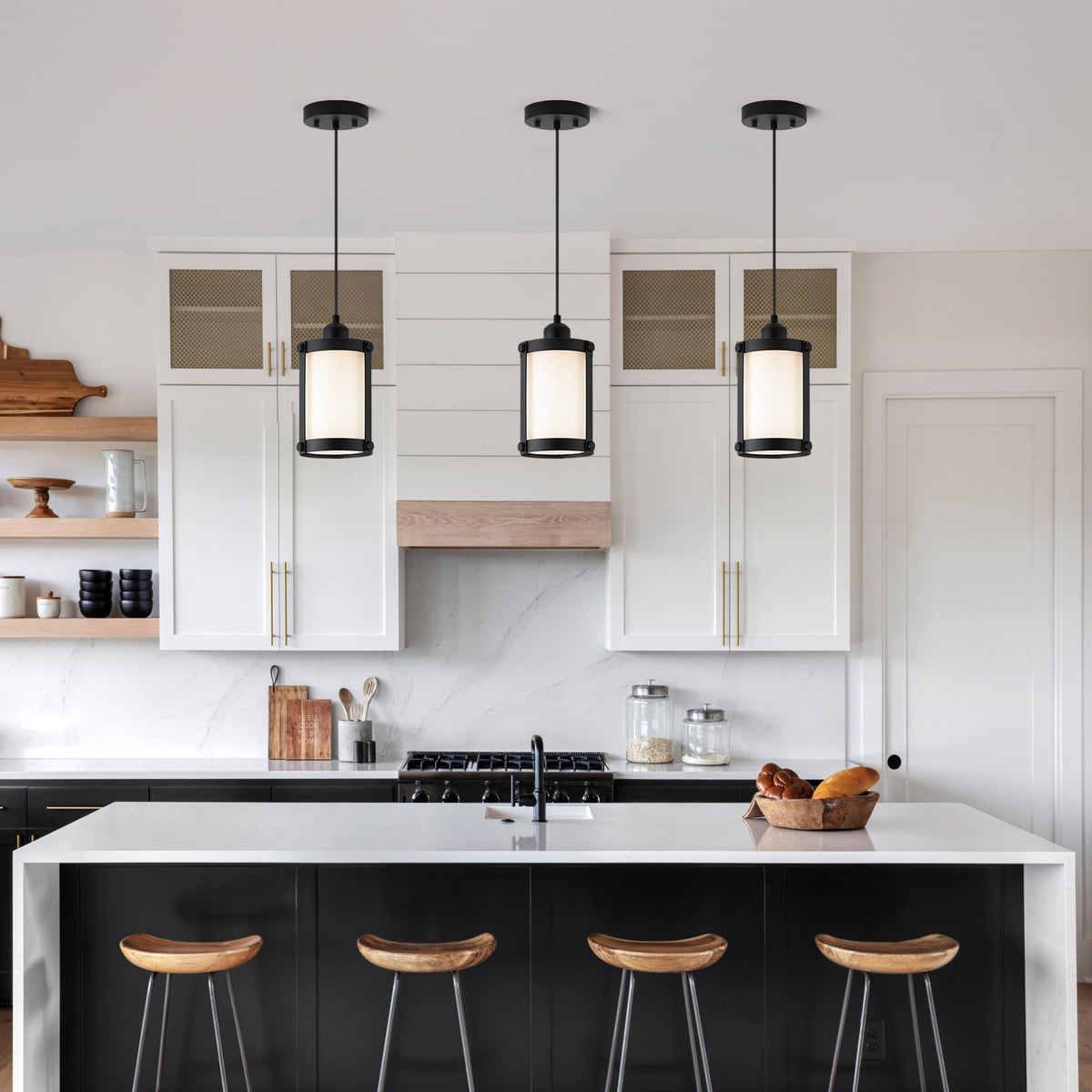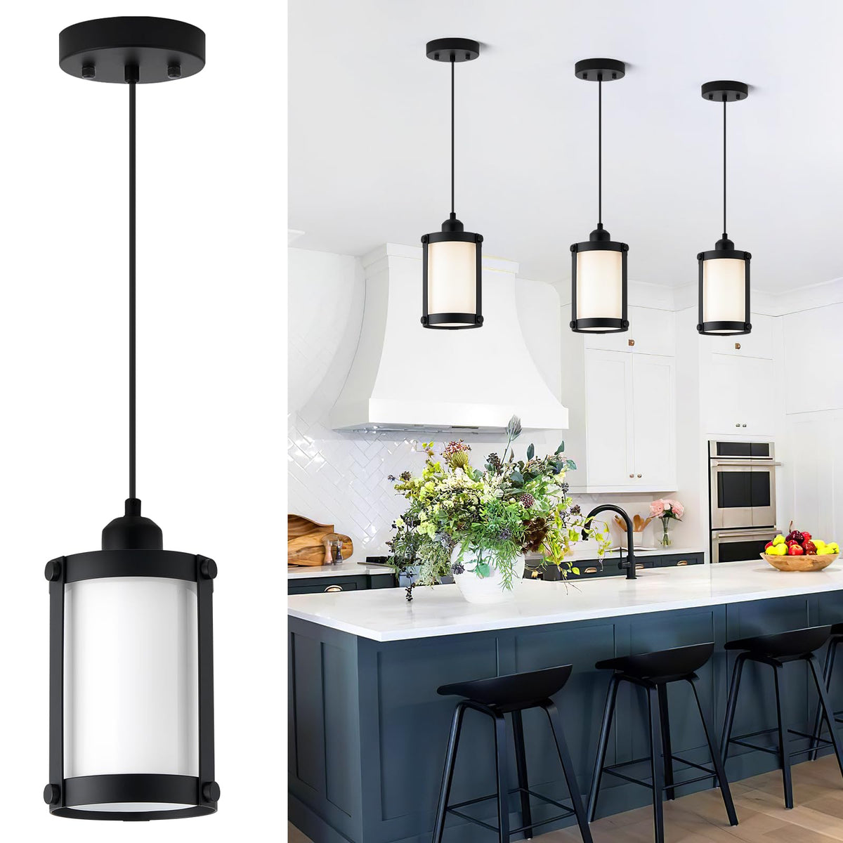 Osimir Black Pendant Lights Kitchen Island, 1-Light Modern Mini Hanging Light Fixtures With Milk Glass, Farmhouse Kitchen Pendan