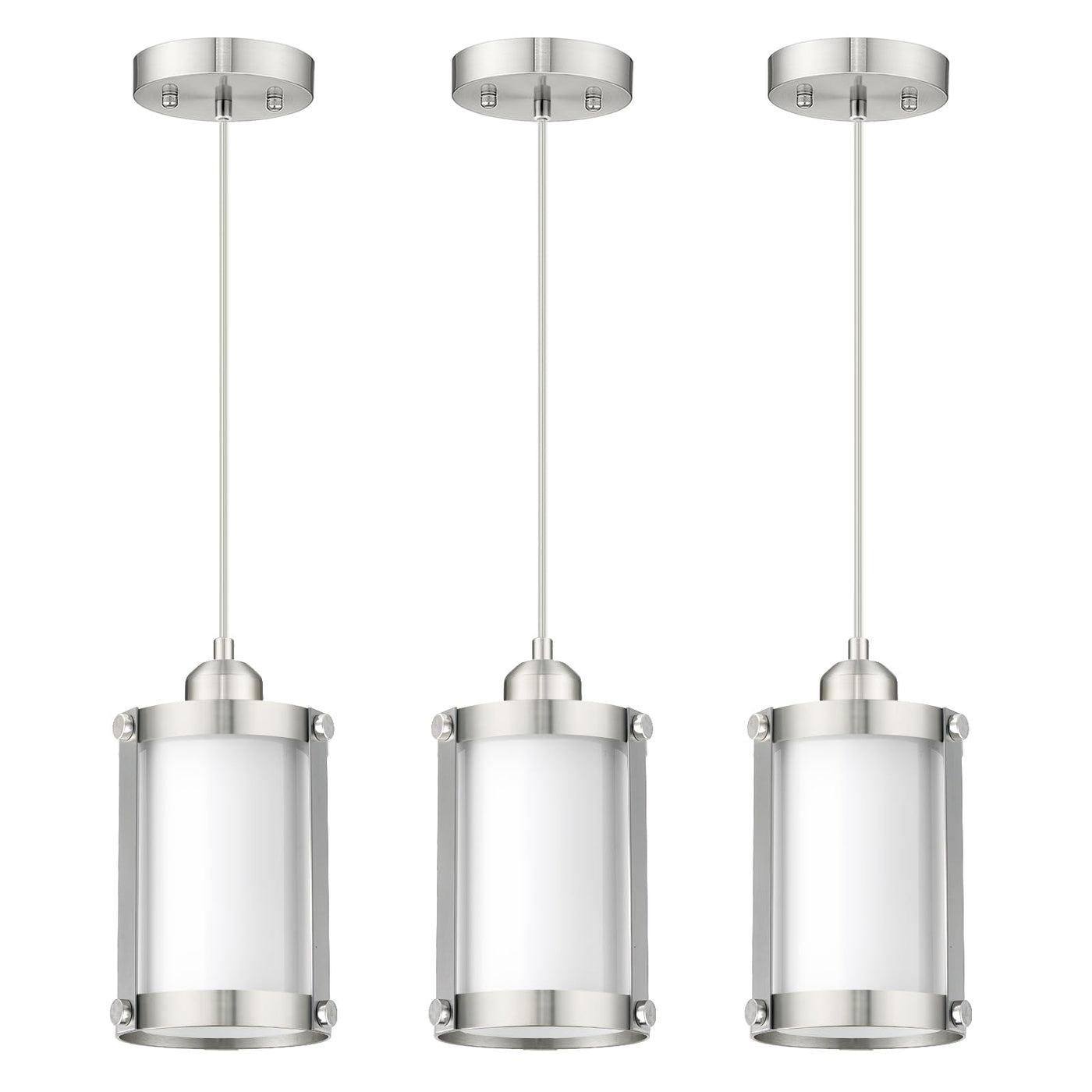 Osimir Brushed Nickel Pendant Lights Kitchen Island 3 Pack, Modern Kitchen Pendant Lighting Over Island With Milk Glass, Farmhou
