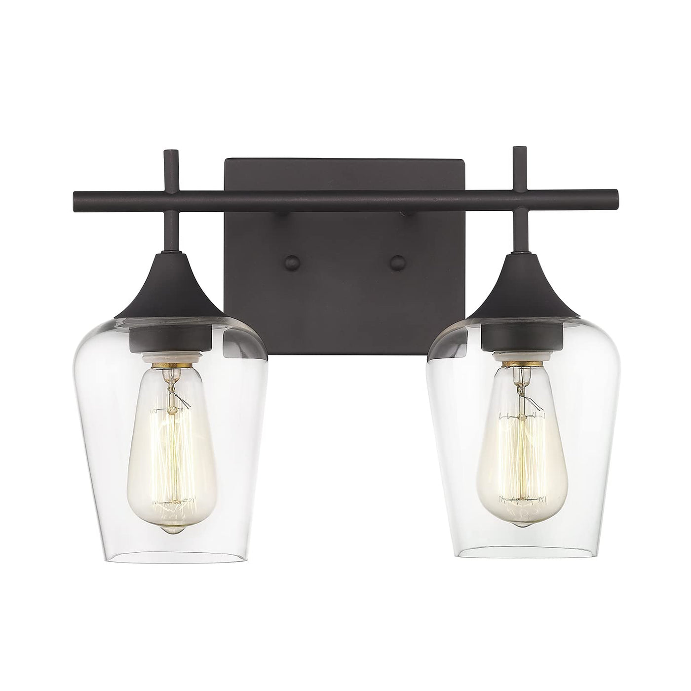 Osimir Oil Rubbed Bronze Bathroom Light Fixture, 2 Lights Bathroom Vanity Lights Over Mirror with Clear Glass, Farmhouse Bath Wa