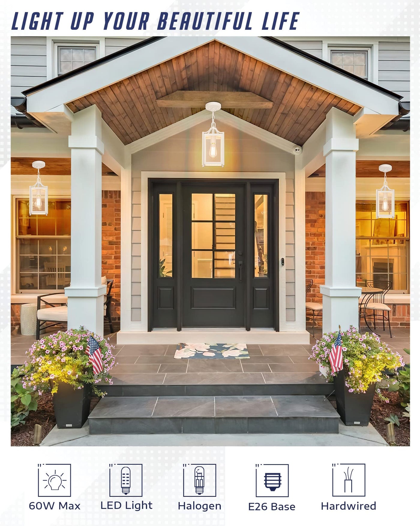 - **Modern Square Design**: Featuring a sleek metal construction and clear glass in a sanded white finish, this outdoor pendant light adds a contemporary touch to any exterior decor.