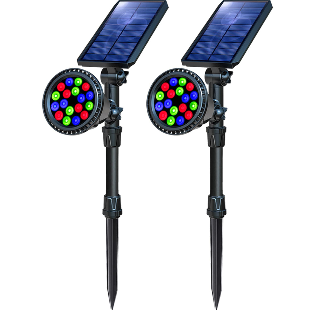 Osord Solar Outdoor Lights, 18 Led Color Changing Spotlights, Waterproof, 2 Pack For Garden