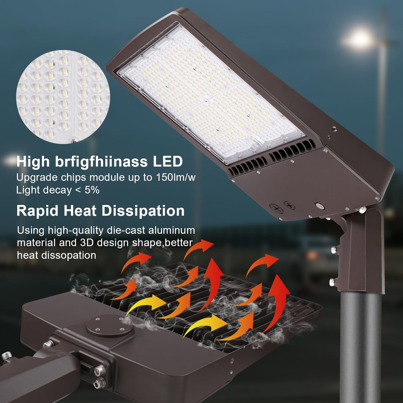 - **Versatile Applications**: Ideal for a variety of outdoor settings including parking lots, driveways, city streets, schools, and public parks, this light fixture is perfect for both commercial and industrial use.