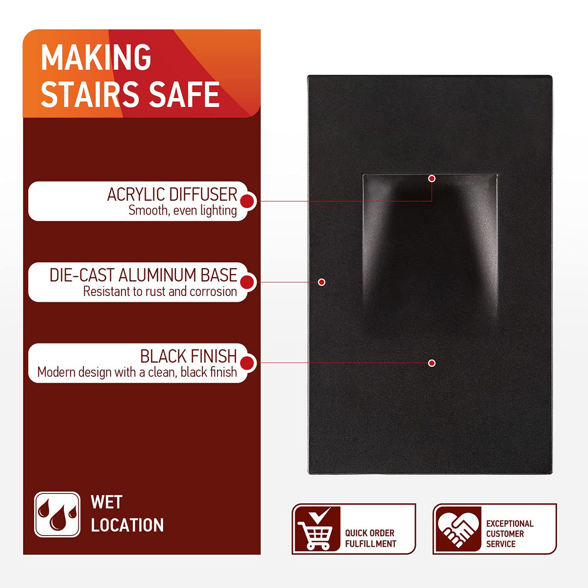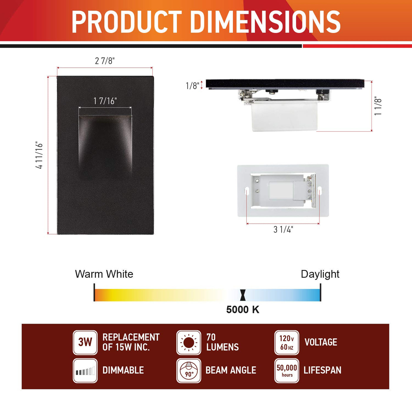 OSTWIN 120V LED Step Light, 3W 70lm, Dimmable Indoor Outdoor Stair Light, 5000K (Daylight) Vertical Stairway Lighting Fixture, S