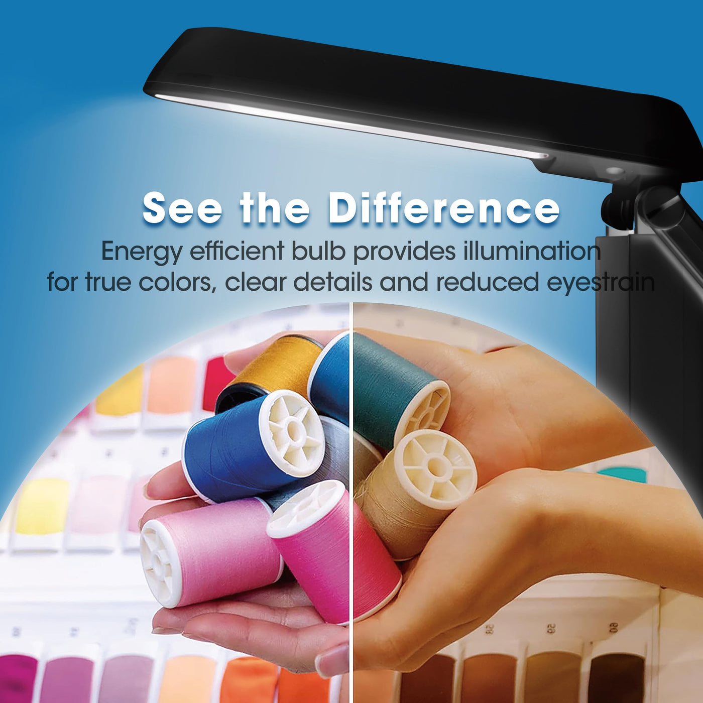 Ottlite 13W Folding Task Lamp Helps You See Everything Clearly And Comfortably With Our Incredible Otitis Illumination - A Precise Balance Of Contrast And Brightness Unlike Any Other. The 13W Folding Task Lamp Features A Unique Fold-Up Design With A Handle For Easy Portability Of The Low Heat, Low Glare Illumination. Folding Shade With Its Small Base Footprint, This Lamp Fits Easily On Most Desks And Workstations.