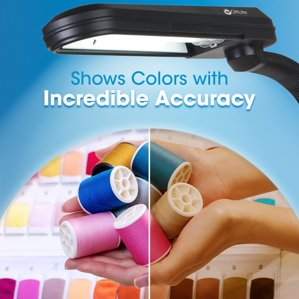 Q: Is the OttLite Floor Lamp suitable for crafting or sewing?A: Yes, the OttLite Floor Lamp is perfect for crafting and sewing as it provides bright, natural daylight that enhances color accuracy and detail visibility. The adjustable neck and weighted base ensure stable and focused lighting for intricate tasks.