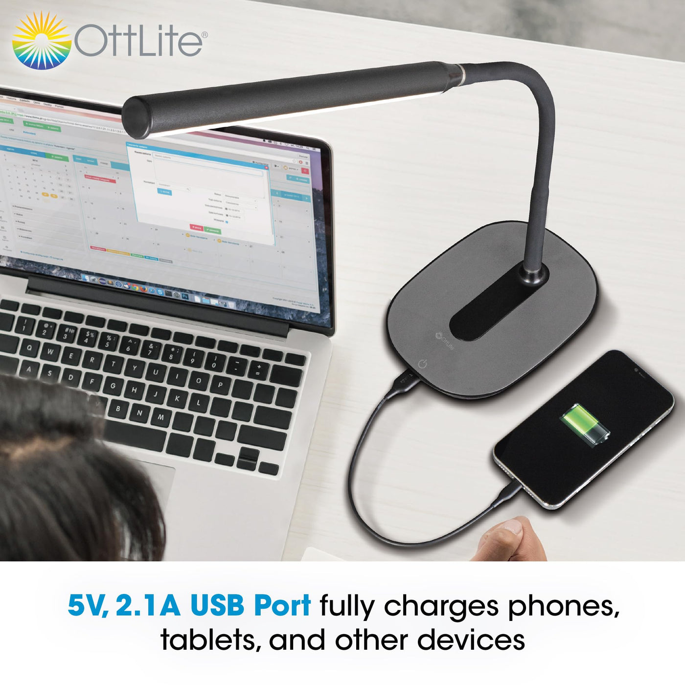 Ottlite Strive Led Desk Lamp With Usb Charging - Clearsun Led Technology - Adjustable & Flexible Neck, 3 Brightness Settings Wit