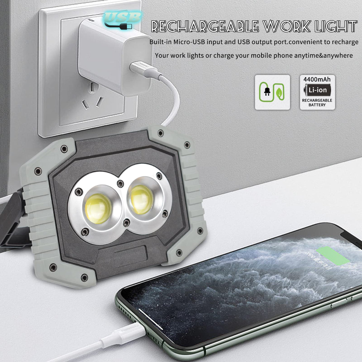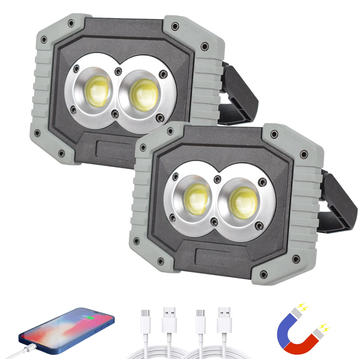 Otyty Work Light Rechargeable, Led Work Light Portable Flood Lights Magnetic Led Light For Outdoor Camping Hiking Emergency Car Repairing Job Site Lighting 2 Pack (W839 Grey)