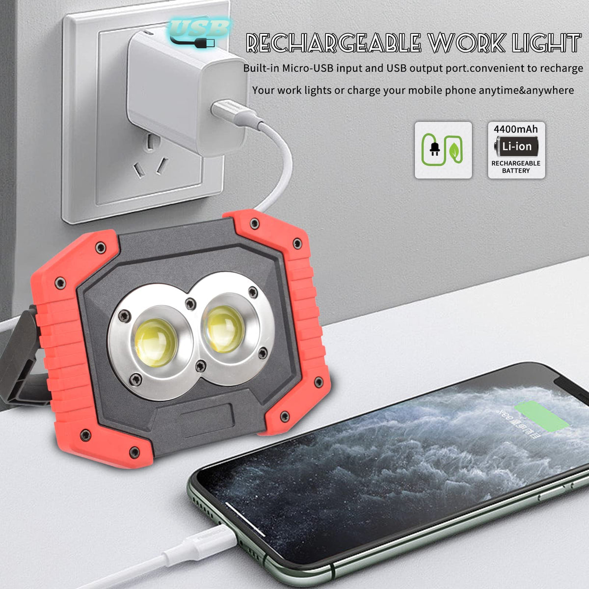 Otyty Work Light Rechargeable, Led Work Light Portable Flood Lights Magnetic Led Light For Outdoor Camping Hiking Emergency Car Repairing Job Site Lighting 2 Pack (W839 Red)