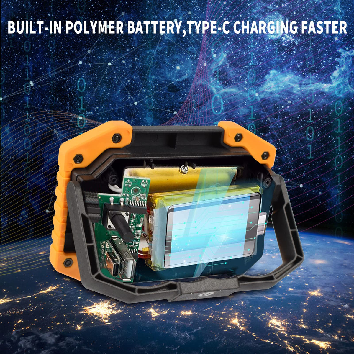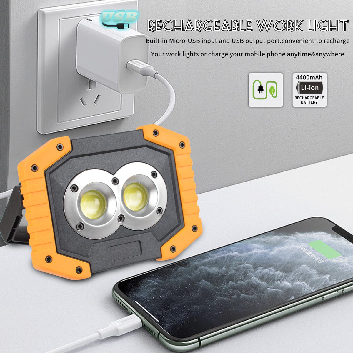 Otyty Work Light Rechargeable, Led Work Light Portable Flood Lights Magnetic Led Light For Outdoor Camping Hiking Emergency Car Repairing Job Site Lighting 2 Pack (W839 Yellow)