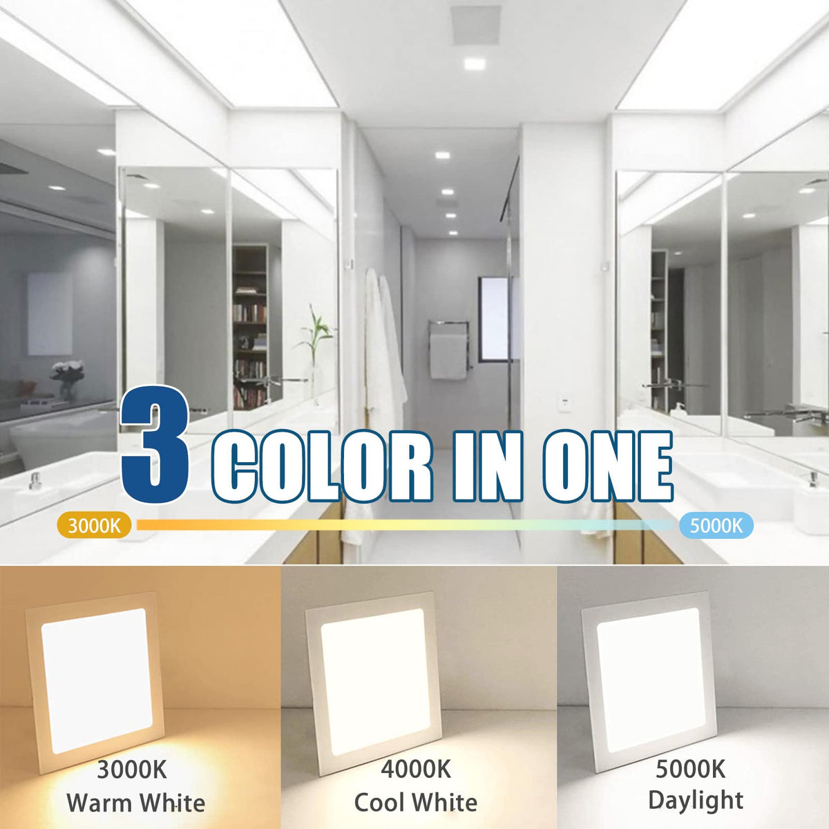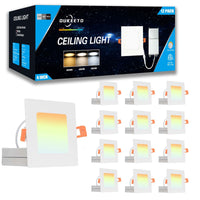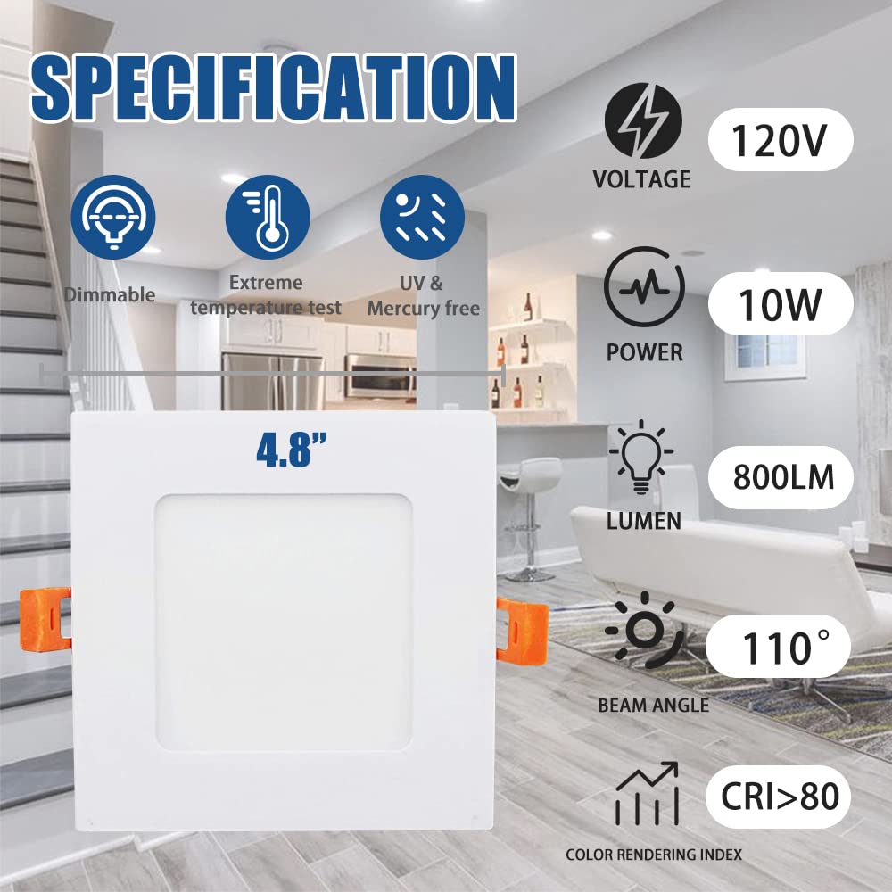 Oukeeto 4 Inch Led Square Recessed Light - 3000K/4000K/5000K Color Selectable, 10W=75W 800Lm Ultra-Thin Dimmable Downlight Led W