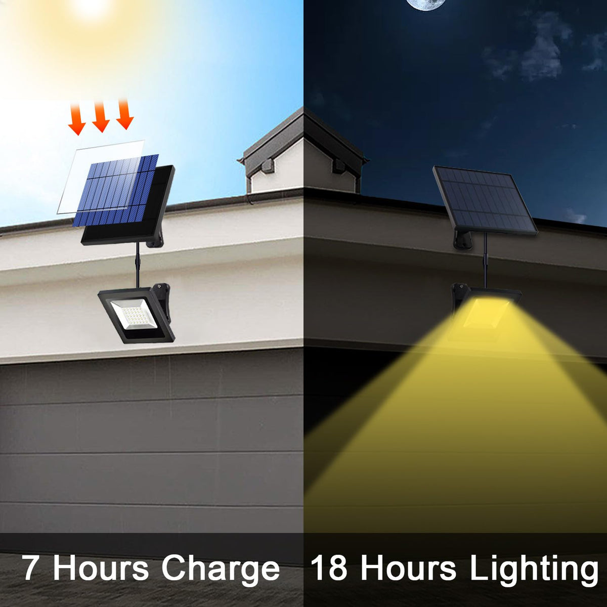 Powerful Warm White LEDs: The solar flood lights utilize 30 warm white 2835# LEDs, delivering bright and stable lighting equivalent to a 50-watt bulb. The adjustable light angle of up to 350 degrees allows for optimal positioning, making it ideal for illuminating dark areas.