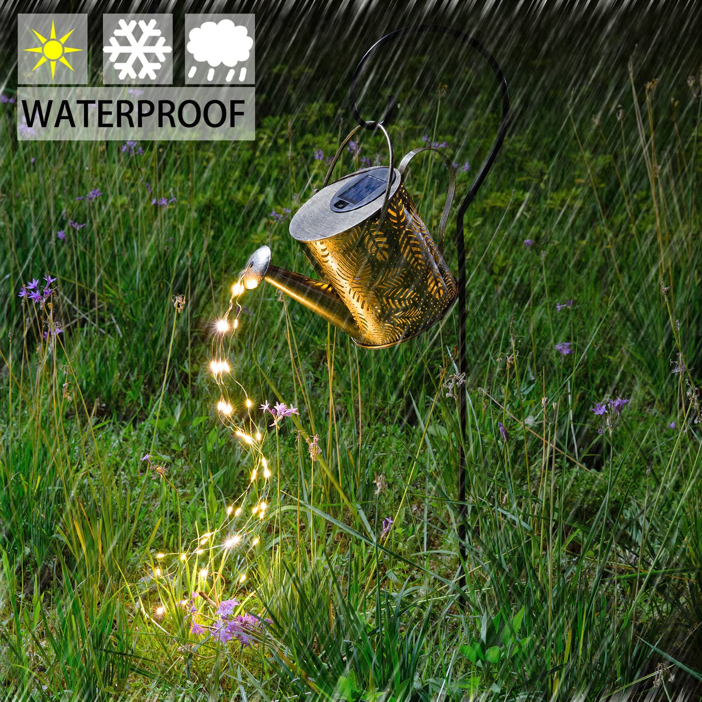 Outdoor Garden Decor Solar Lights, Large Waterproof Watering Can Landscape Lights Hanging Outside Decorations For Gardening Gift