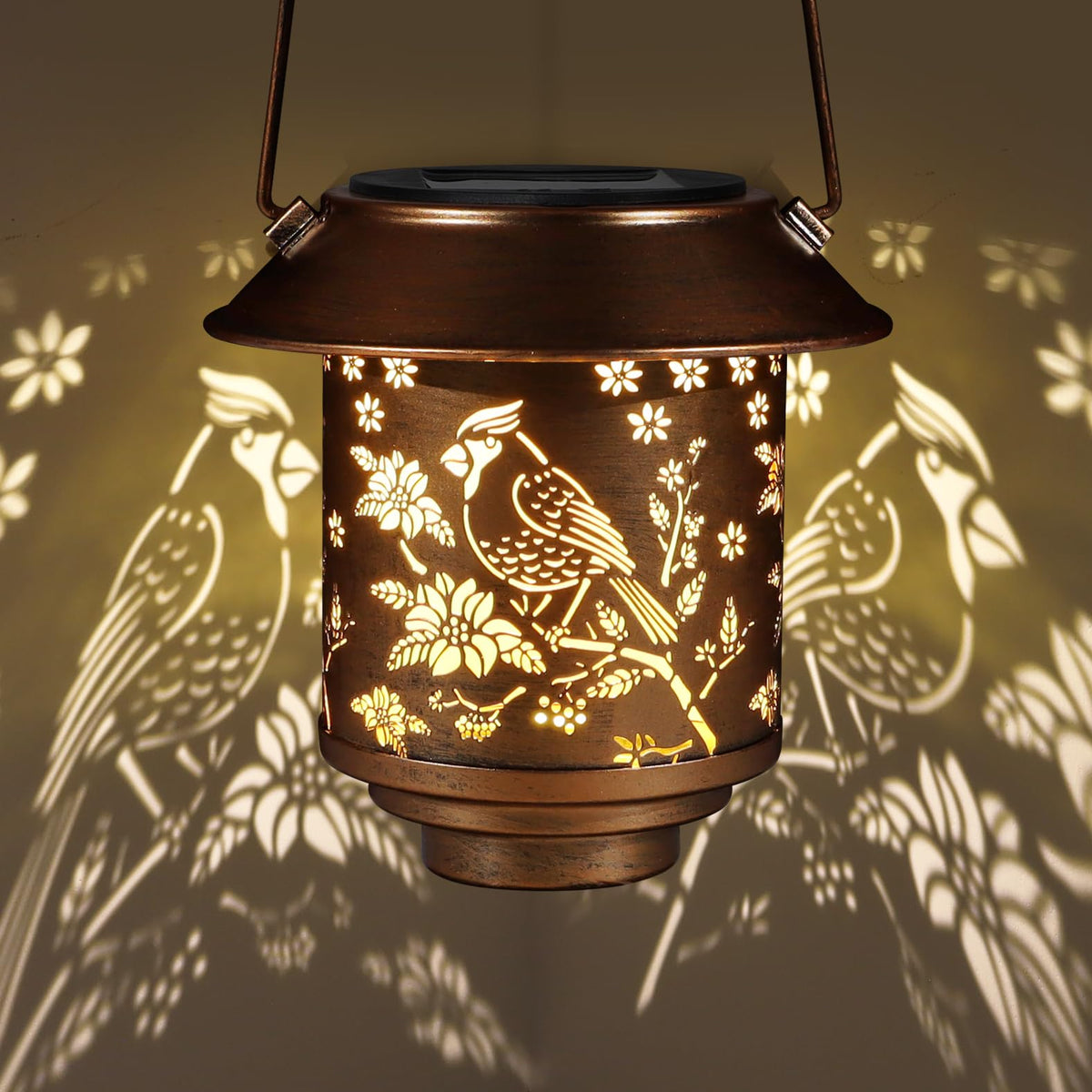 Outdoor Hanging Solar Lantern Waterproof Outside Metal Openwork Cardinal Pattern Landscape Lights For Porch Garden Yard Patio Pa