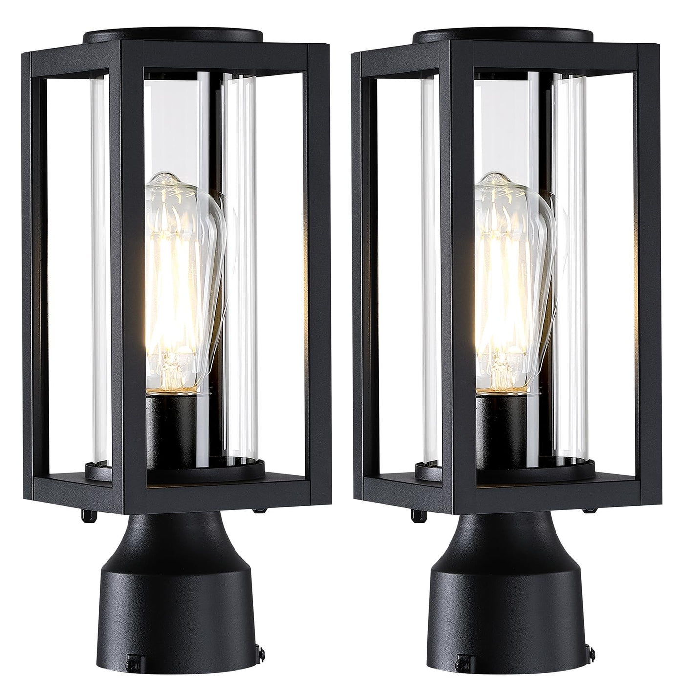 Outdoor Post Lights Lamp Post Light Fixture 2 Pack, Modern Black Exterior Post Lantern Fixture With Tempered Glass, Anti-Rust Al