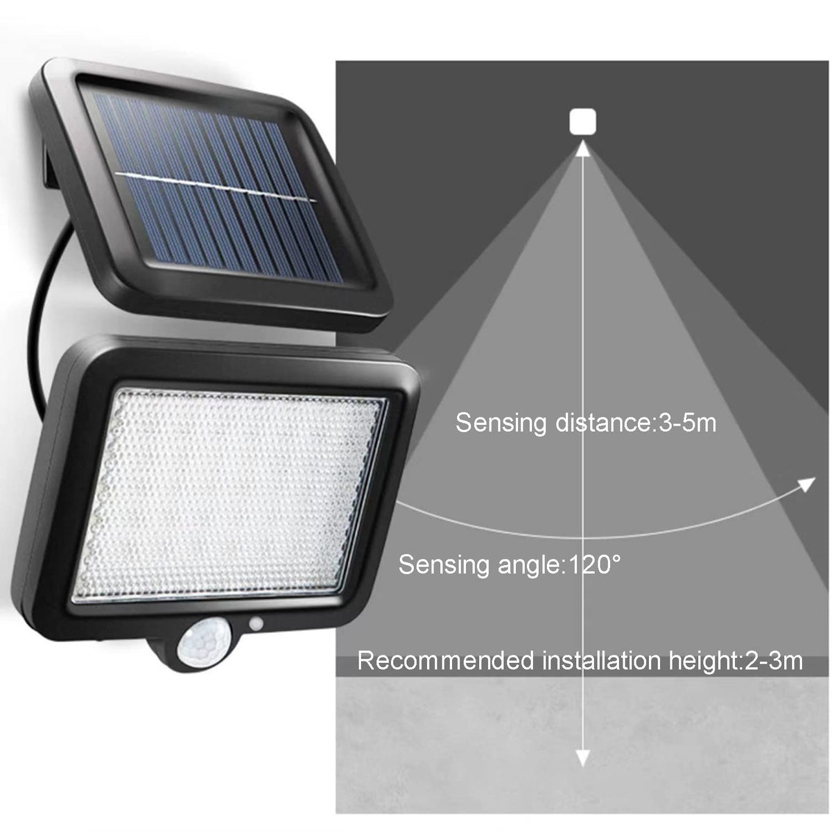 Note:The lamp can only be illuminated when there is no light on the solar panel. Spec: Material: Plastic & ABS Lumens: 300LM Sensing Distance: 3m-5m Battery: 3.7V rechargeable 2000mAh Charing time:6-8hours when sunny Working Time: More than 10h when fully charged Number of LEDs: 56 0.2W 2835 SMD Cord length:5m/16.5ft Light Size: 15x11x2.4CM Solar Panel Size: 13x11.5x1.5CM Package Included: 1 x LED Motion Sensor Light 1 x Solar Panel with 16.5ft Cord 2 x Mounting Brackets 4 x Screws 4 x Expansion Pillar-hinges