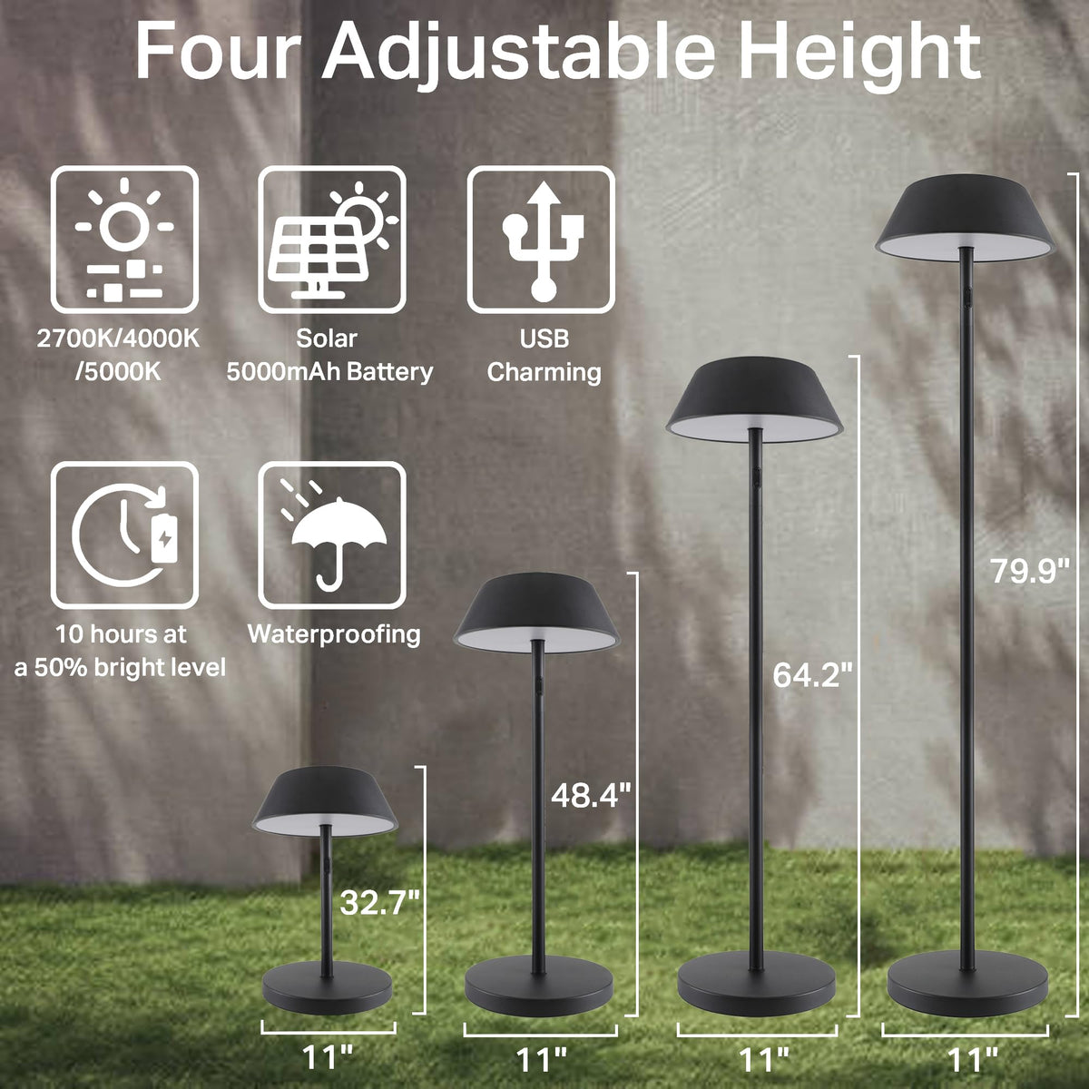 Outdoor Solar Powered Floor Lamp For Patios, Decks, Outdoor Living Spaces, Reading - Tall, Ultra Bright, Cordless, 3 Different L