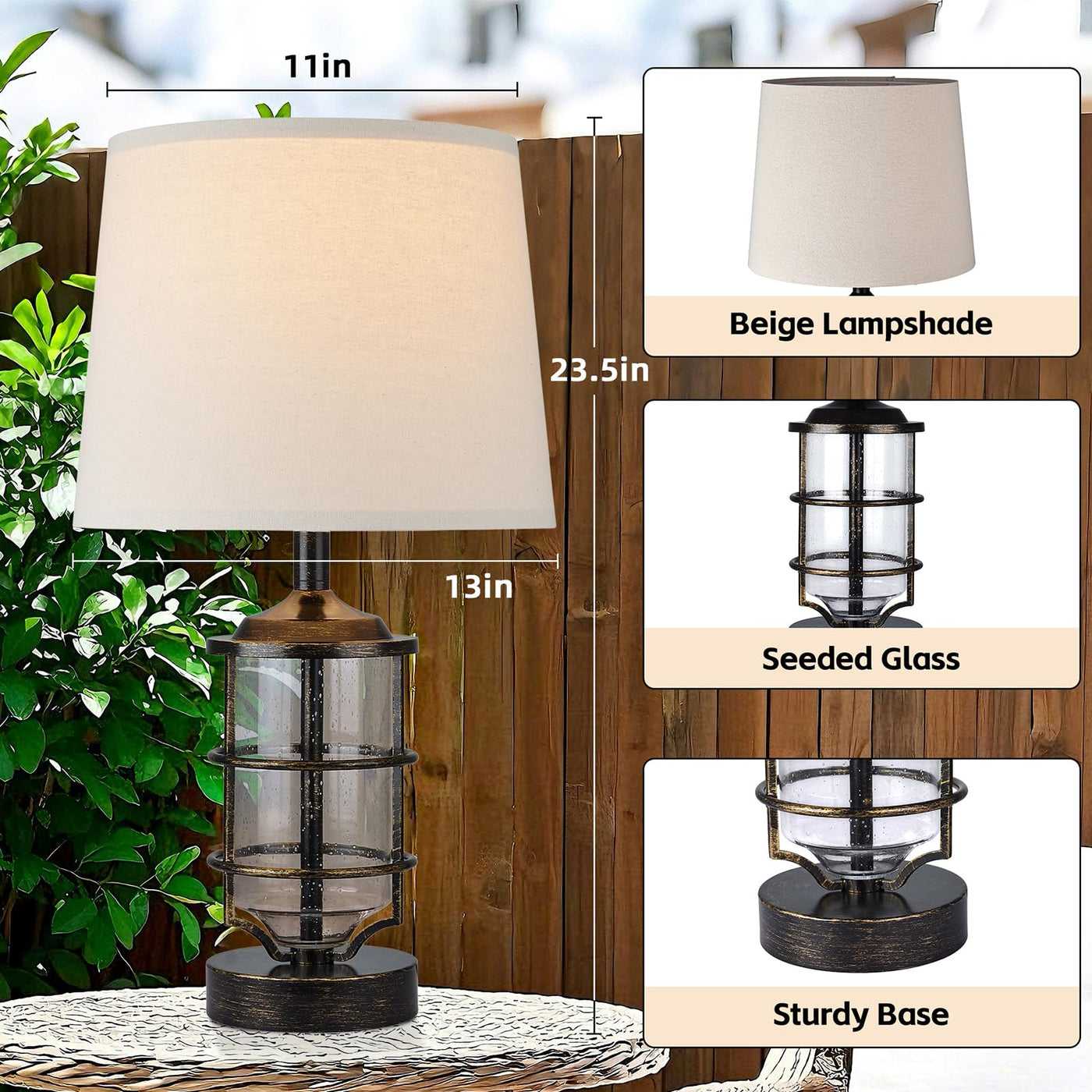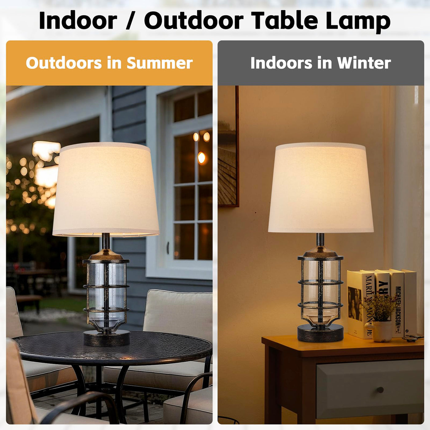 Outdoor Table Lamp, Farmhouse Lamp for Patio Table Decor with Cord, Rustic Table Light with Seeded Glass, 23.5 Plug-in Outdoor