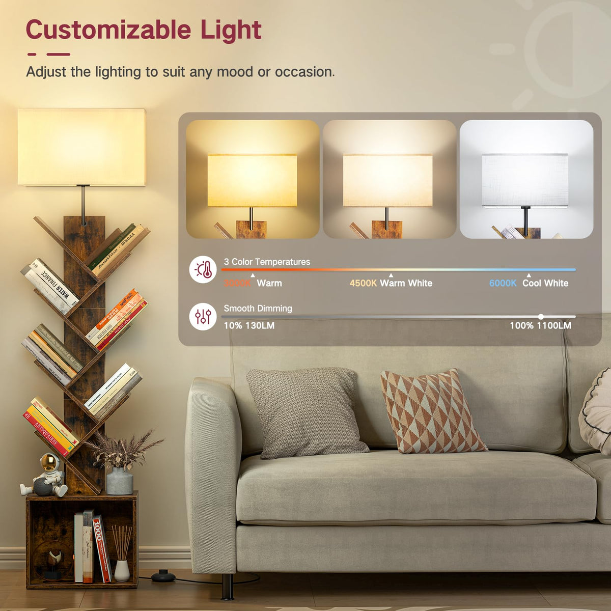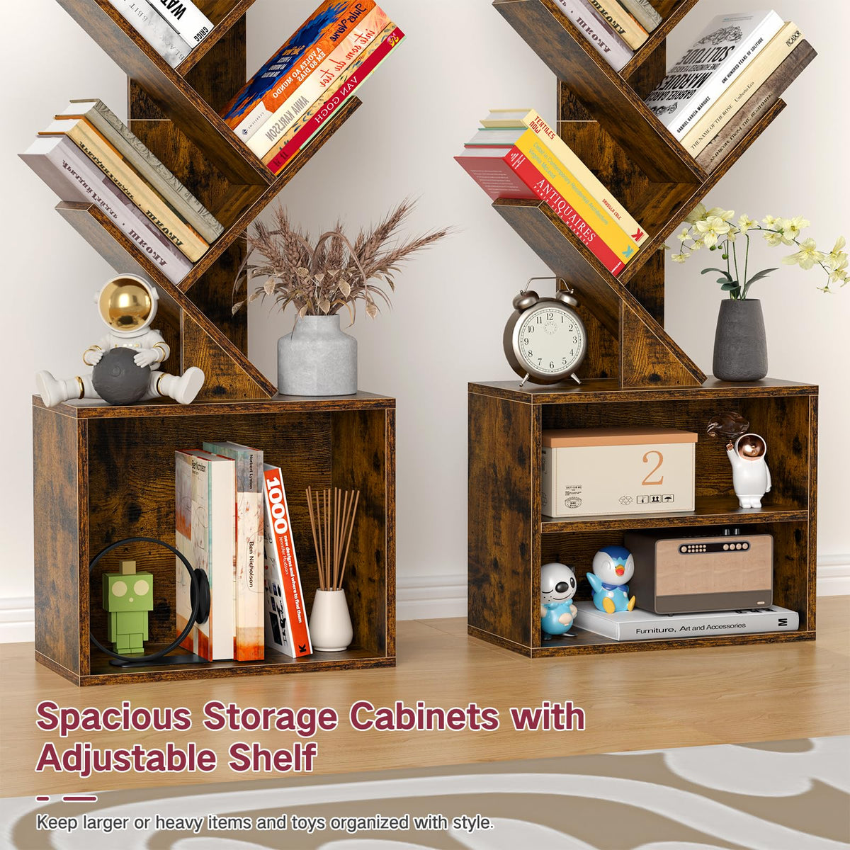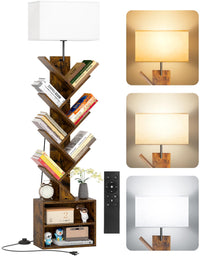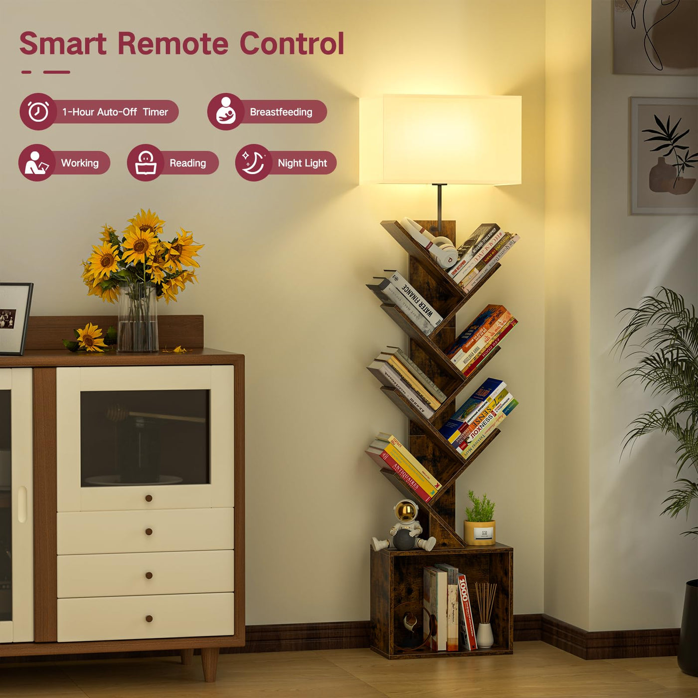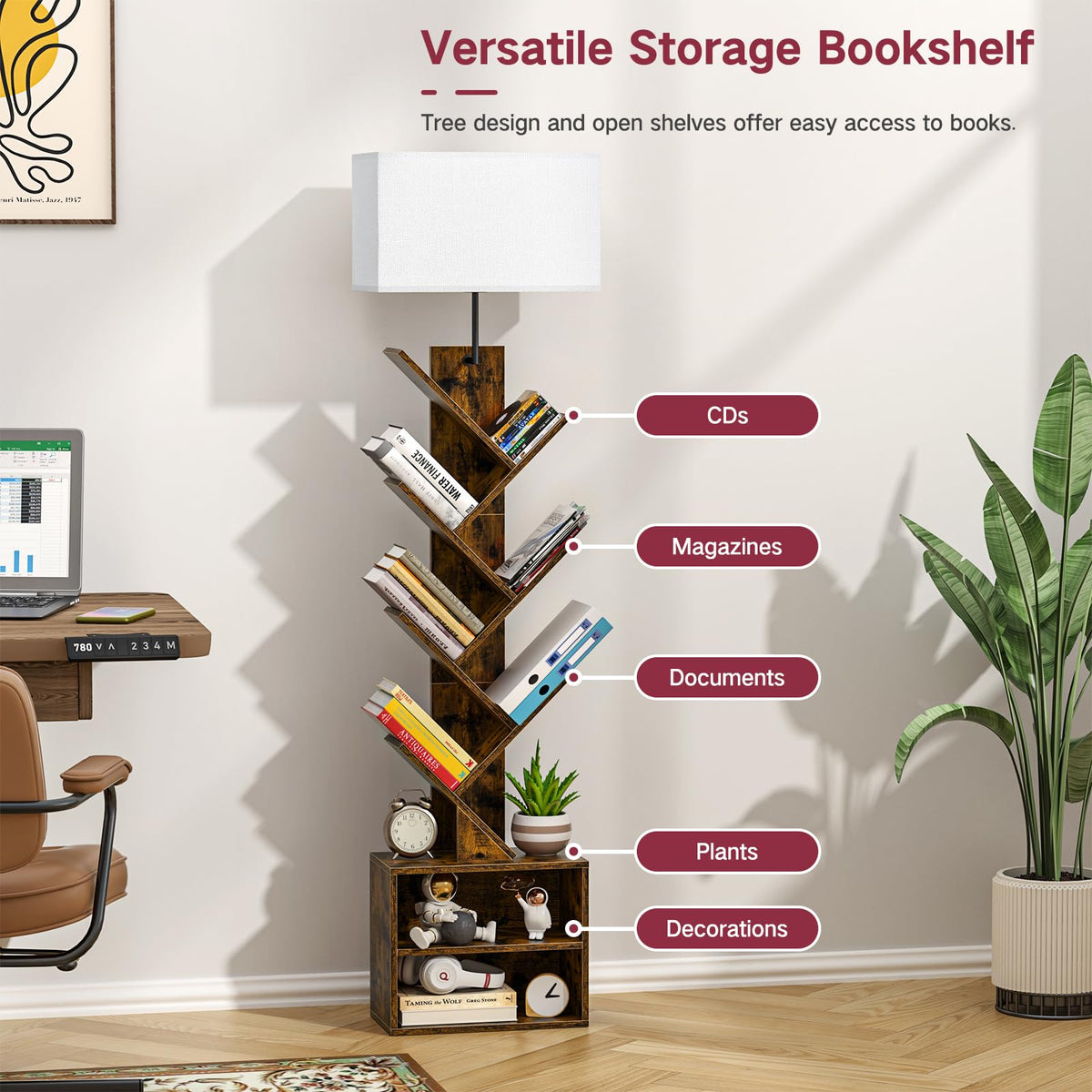 Outonlife 9 Tier Tree Bookshelf With Lamp, Remote, Timer & Cabinet, Dimmable Modern Tall Floor Standing Corner Book Shelf, Small