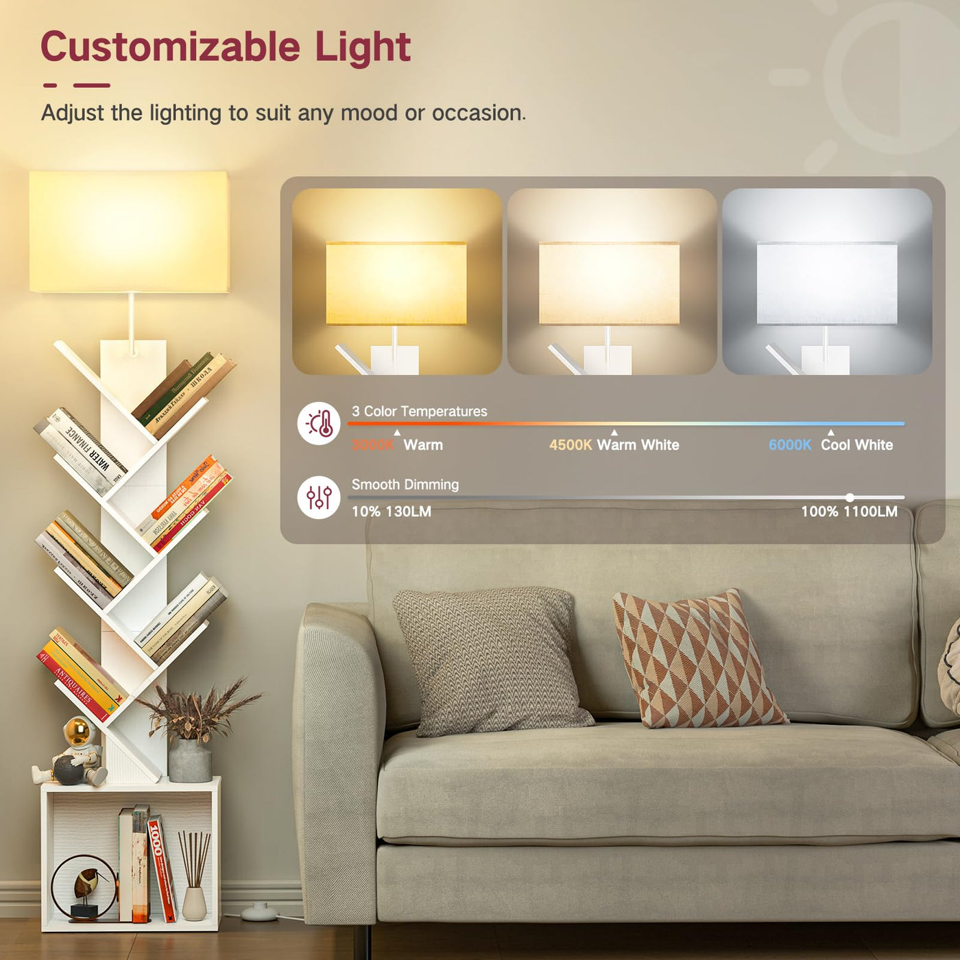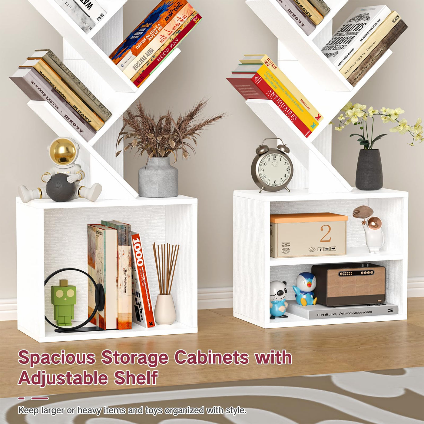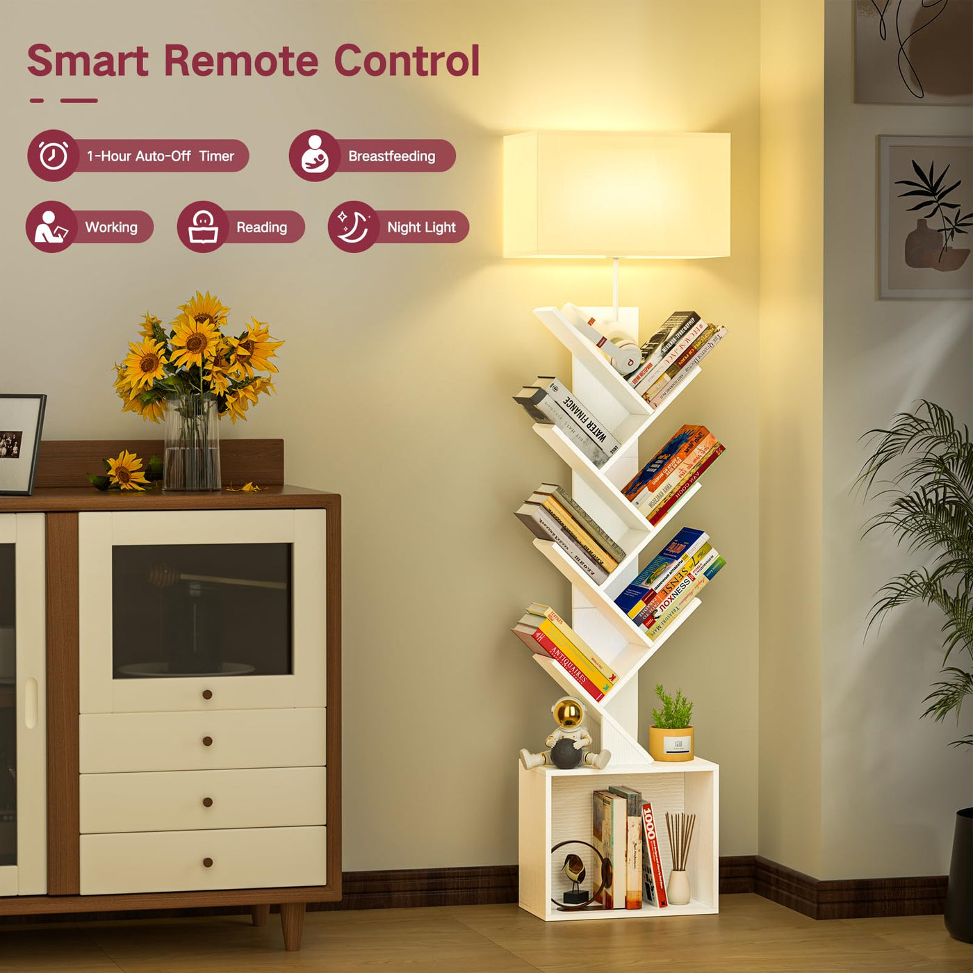Outonlife 9 Tier Tree Bookshelf With Lamp, Remote, Timer & Storage Cabinet, Dimmable Modern Tall Floor Standing Corner Book Shel