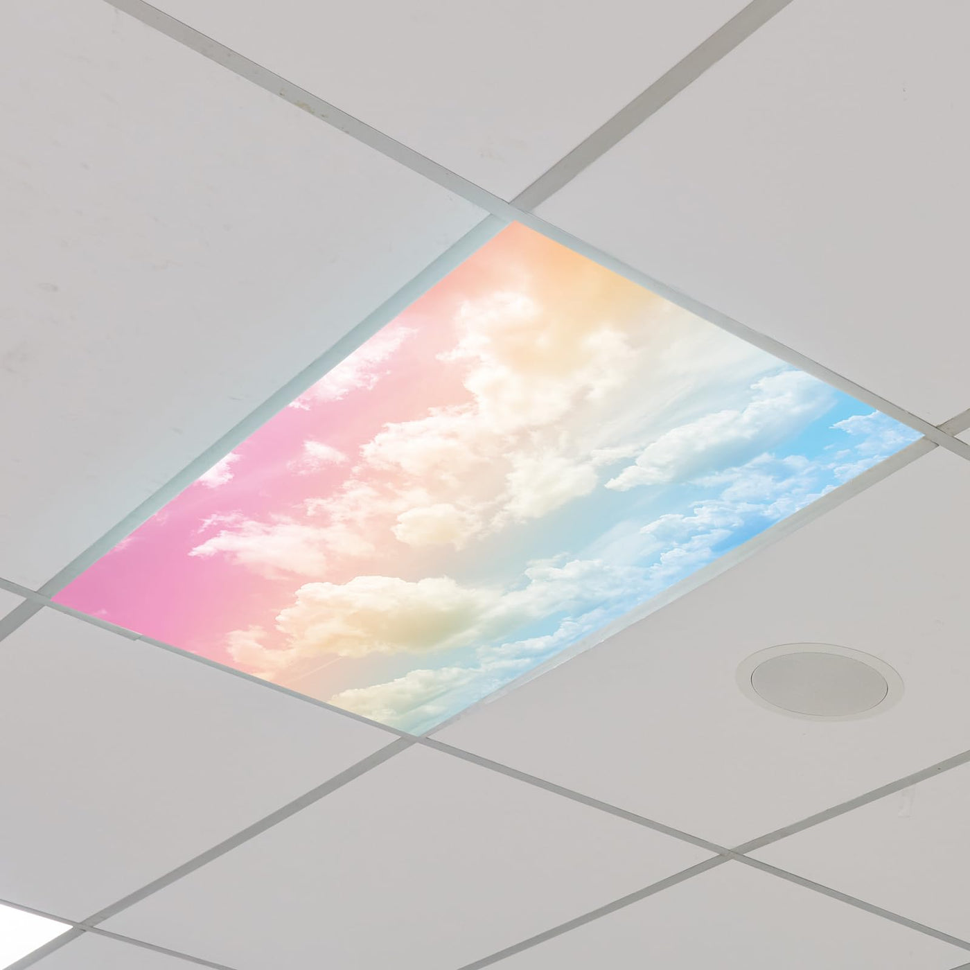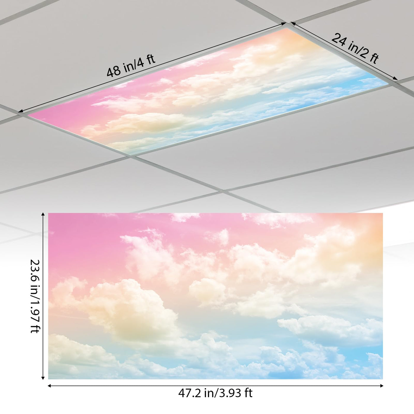 This ceiling light cover features a beautiful pink cloud pattern that not only decorates but also softens the harsh lighting from fluorescent lamps. Made for ease of use, each cover comes equipped with ten magnets, allowing for quick and secure installation without the need for additional tools. The design ensures that it stays firmly in place on ceilings, making it suitable for a variety of settings including offices, classrooms, and living areas.