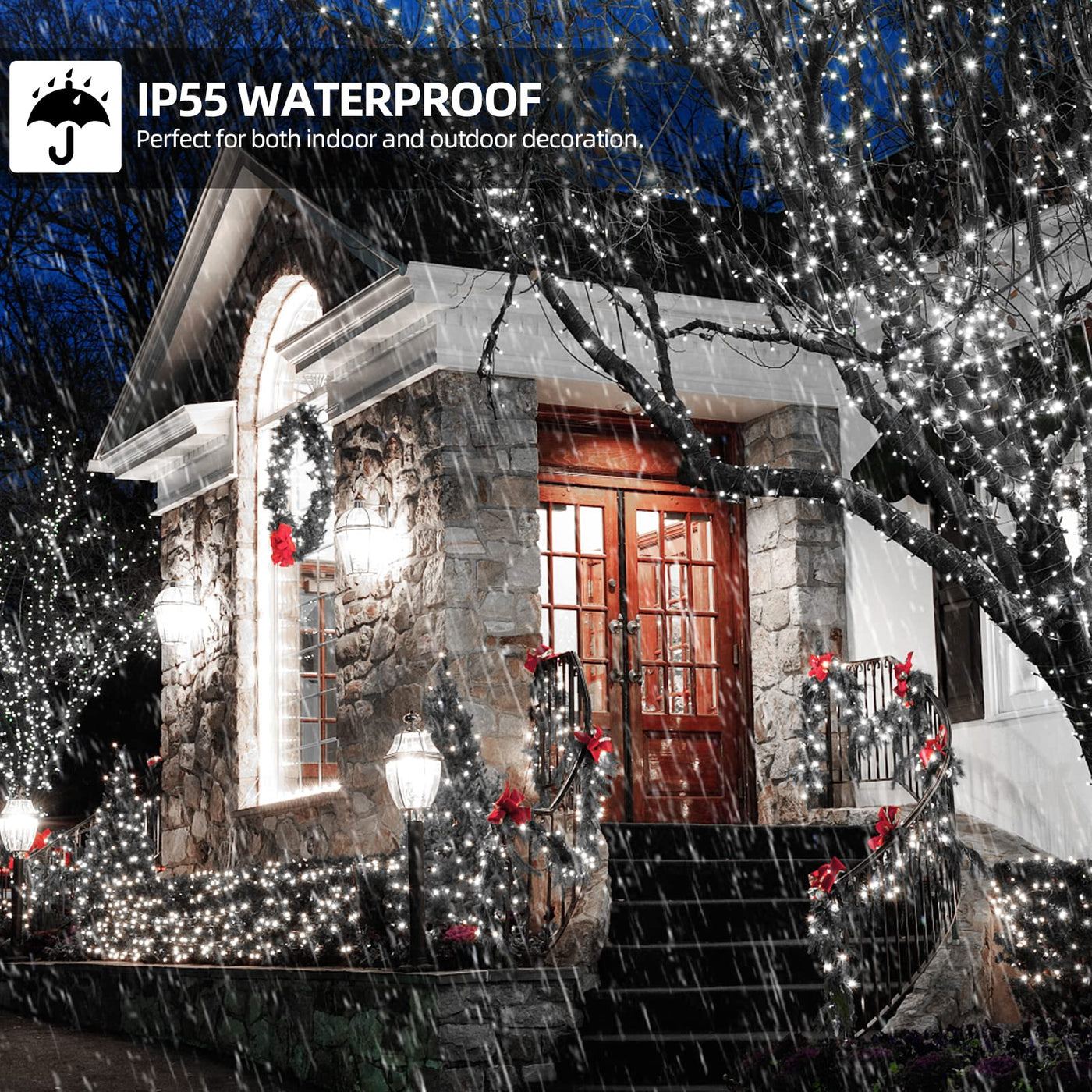 This night light is of highly waterproof rank IP55. As the whole body is sealed firmly, no risk of leaking. Solid quality and heavy duty construction make it perfect for outdoor decoration, rest assured to use it in rain or moisture environment. Such as Wedding, Holiday, Christmas, Garden, Yard,Lawn, Fence, Porch, Tree, Roof, Deck and so on.