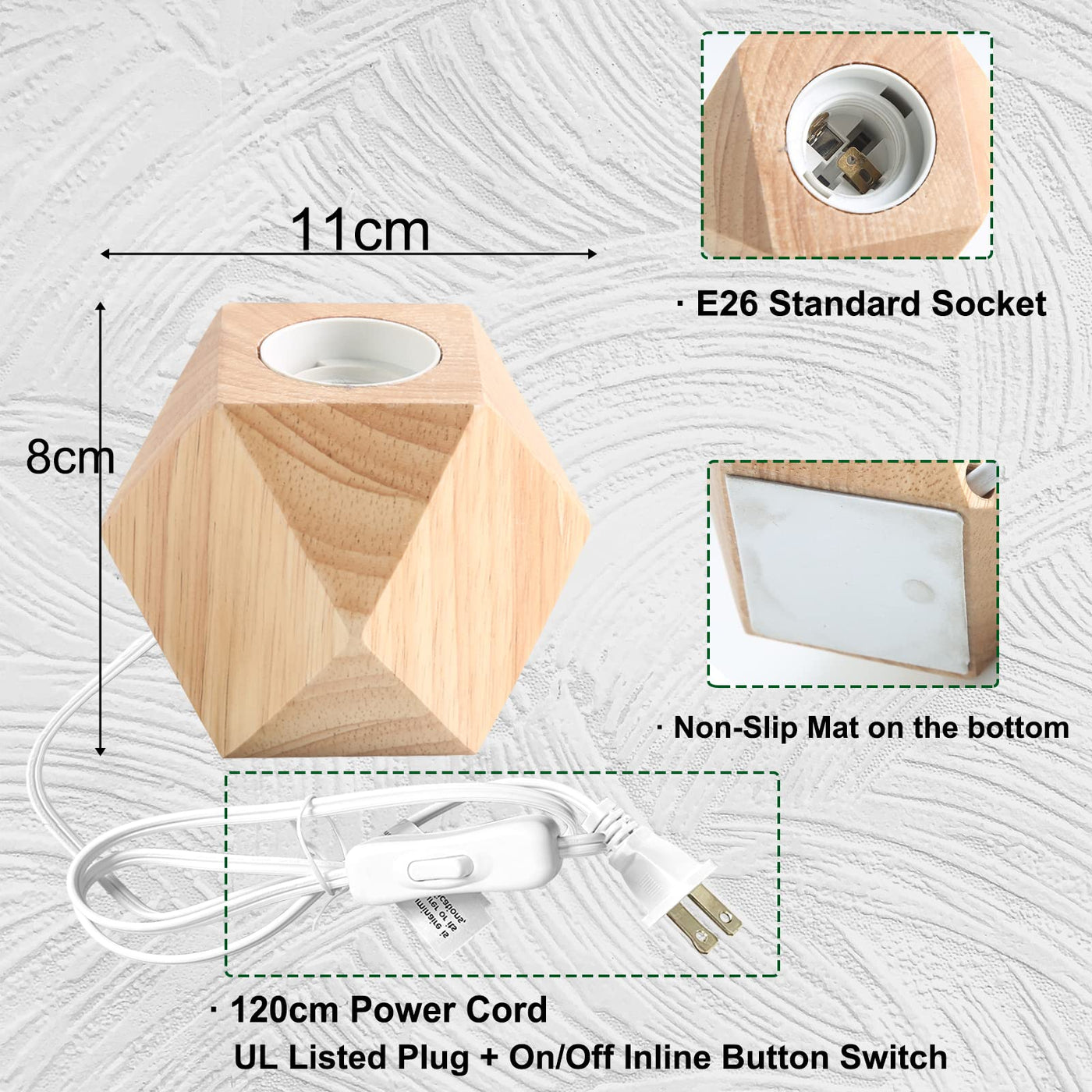 Brand: Ouxean Item Name: Small Wooden Table Lamp Base Color: Wood Material: Wood Cap: E26 Max Watt:60W Voltage: 110V~120V For Space: 3~5? Style: Retro Industrial, Concise, Nordic Style Note: This Lamp Is With Push Buttonpack Include: 1 Piece Wooden Table Lamp Base (No Bulb) The Lamp'S Beautiful And Unique Design, Both Kids And Adults Would Like It, It Would Bring Us Lovely And Comfortable Living Environment. Safty Installations And Tips: 1. Switch Off Before Done The Bulbs Installation. 2. If You Are Not Sure To Use Which Bulb, Please Consult Us For Best Matching Bulbs Proposal. 3. If Need To Change The Bulb, Please Turn Off The Lamp And Pull Off The Plug, Waiting The Bulb Is Cool Enough To Touch. 4. Do Not Touch Bulb When The Fixture Is Working. 5. Keep The Flammable Materials Away From Lit Bulb.