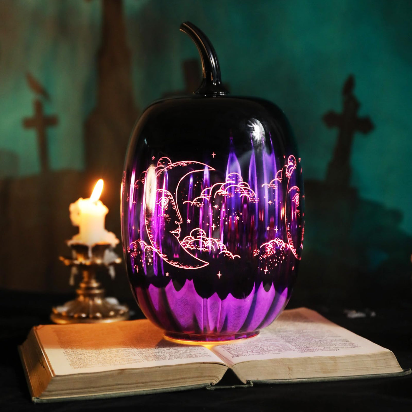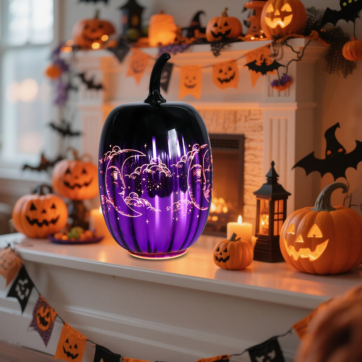 Ovewios Glass Pumpkin Lights Light Up Pumpkins Table Lamps For Halloween Decorations Fall Thanksgiving Holiday Party Home Tabletop Centerpiece Decor