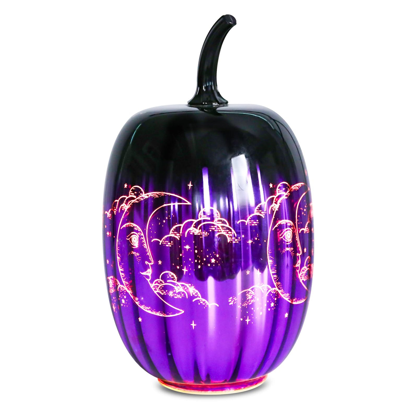 Fantastic Glass Pumpkins Feature A Classic Shape With A Decorative Pumpkin Vine Added To The Top, Crafted From enhanced Glass. This Exquisite Pumpkins Offer Timeless Appeal, And The Led Lights Inside Emit A Wonderful And Eerie Glow, Creating A Striking Display That Enhances Your Seasonal Decor