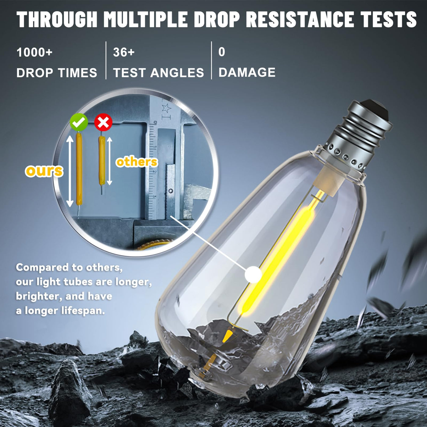 Q: Are the bulbs of these outdoor string lights shatterproof?A: Yes, the Oviviam outdoor string lights come with 50 shatterproof ST38 Edison bulbs and 4 extra bulbs, made from anti-UV PET resistant plastic, making them much safer and more durable than traditional glass bulbs.