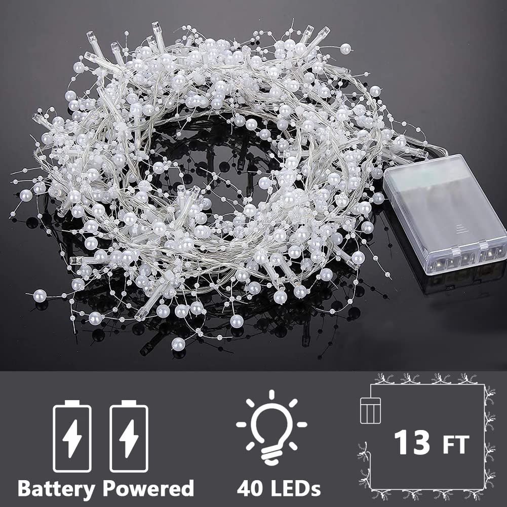 13FT 40LED Christmas Pearl String Lights Powered by 3*AA Batteries (batteries not included)