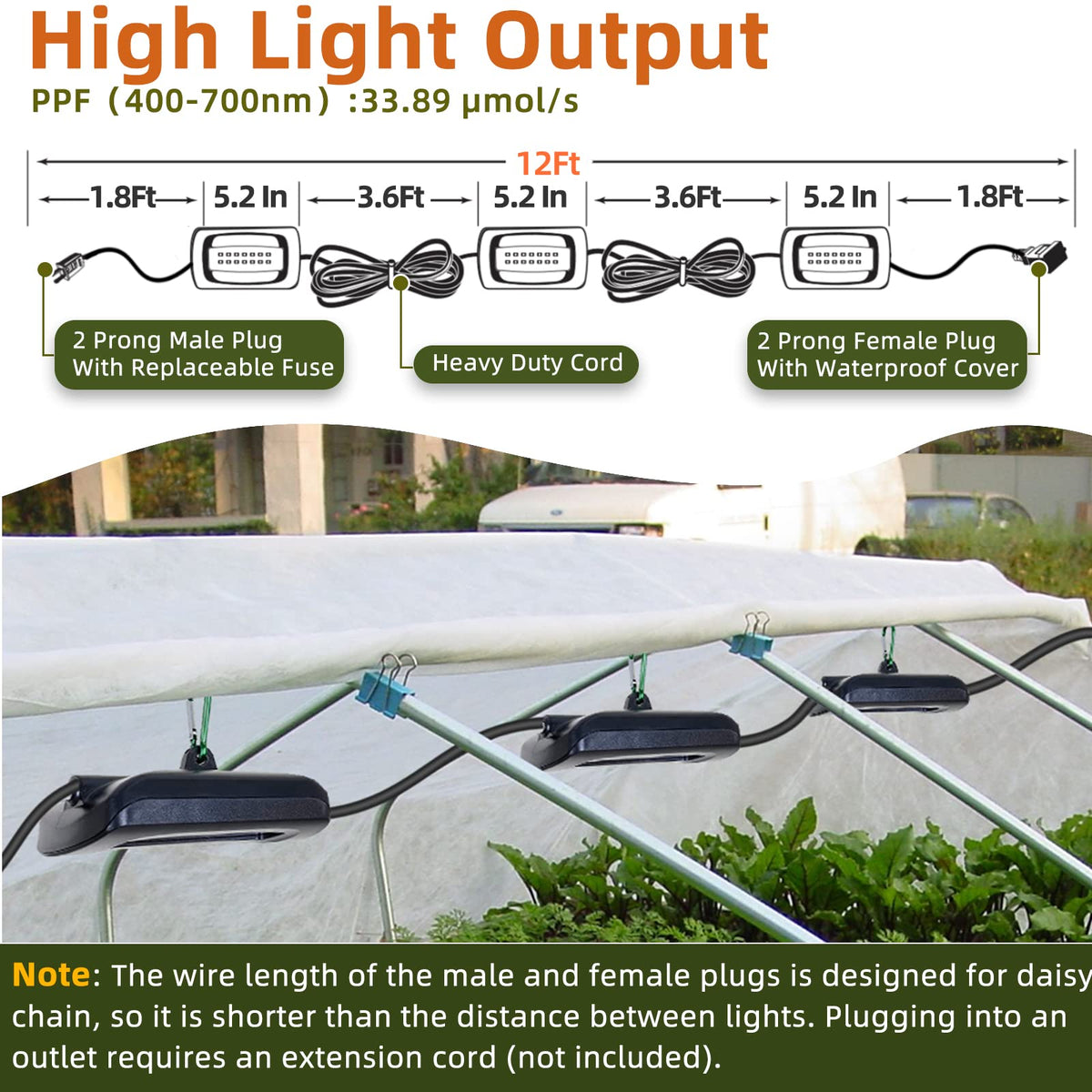 Owleye 12Ft Led Grow Lights, Ip65 Waterproof, Full Spectrum, Linkable, For Garden & Greenhouse