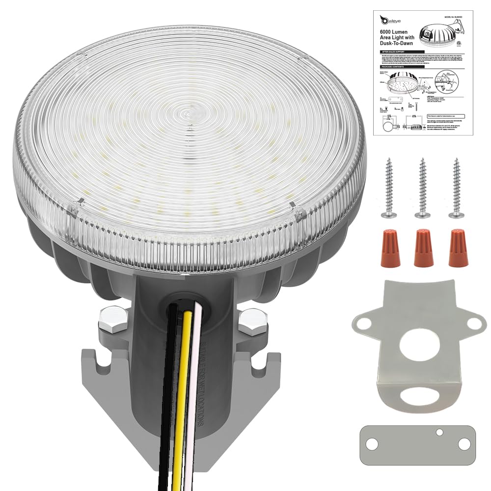 Introducing the Owleye 6000LM Dusk to Dawn Outdoor Lighting - the ultimate solution for illuminating your outdoor spaces with unparalleled brightness and efficiency. Designed for durability and ease of use, this LED barn light is perfect for a variety of settings including yards, warehouses, garages, and more.