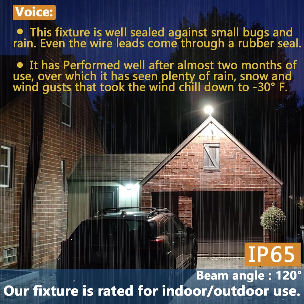 - **Weather Resistant Design**: Constructed with a robust aluminum alloy, this outdoor light boasts excellent corrosion resistance and heat dissipation. Its professional IP65 waterproof rating ensures reliable performance in various weather conditions, functioning safely in temperatures ranging from -4°F to 120°F.
