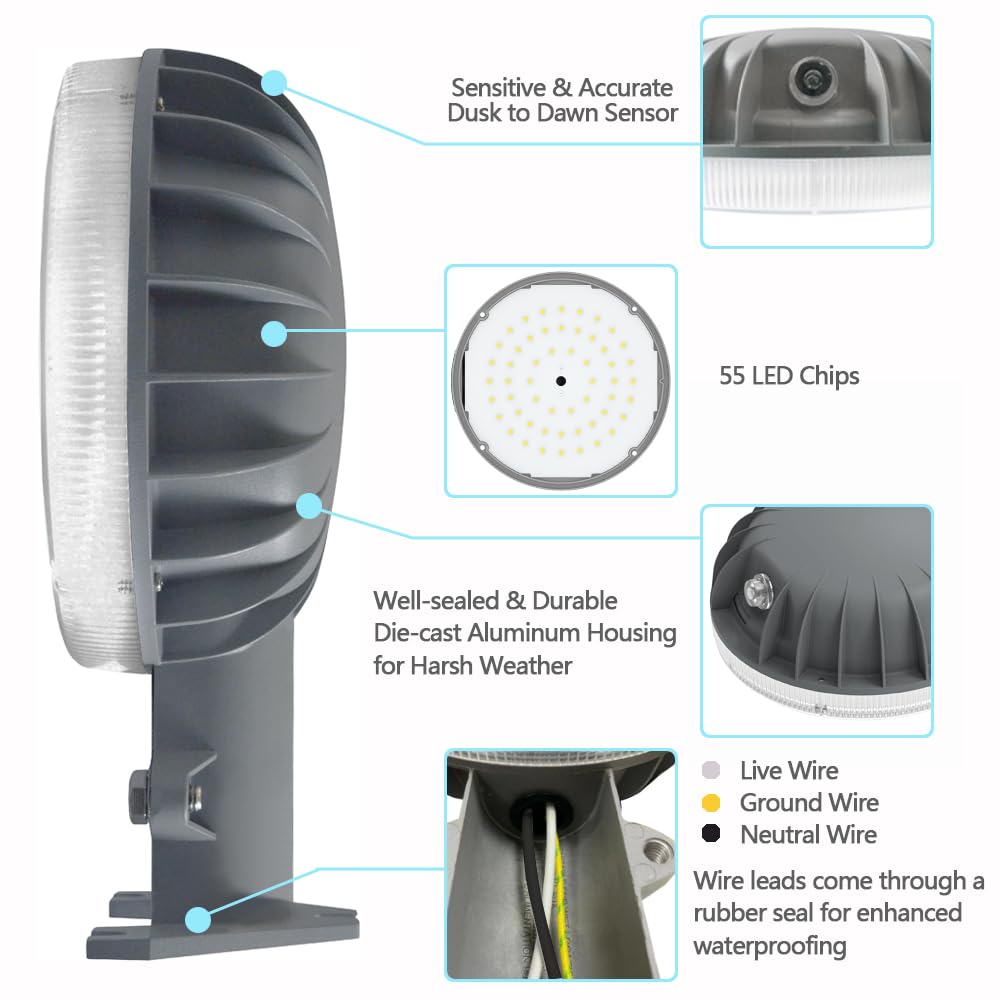- **Automatic Dusk to Dawn Functionality**: Featuring a sensitive and accurate photocell, this light automatically turns on at sunset and off at sunrise, allowing you to save on electricity bills while enjoying hassle-free outdoor lighting.