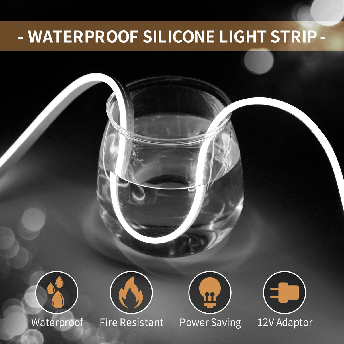 Q: Is the neon light strip waterproof?A: Yes, the neon LED strip is wrapped in silicone and has an IP65 waterproof rating, making it suitable for both indoor and outdoor use.