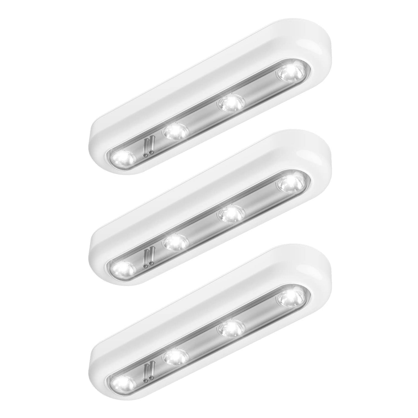 OxyLED Mini Tap Light - Battery Operated, Touch Sensor, 4-LED, 140° Rotation, 3 Pack, White Light, Model T-01-3