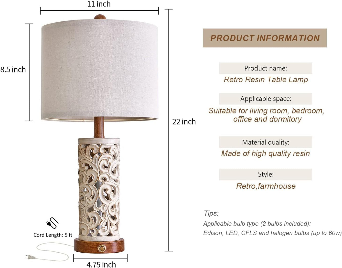 Q: Are the included bulbs energy-efficient?A: Absolutely! The OYEARS table lamp set includes two energy-saving bulbs that consume significantly less energy compared to traditional bulbs. They have a longer lifespan and can help reduce your electricity bills by at least 90%, providing both convenience and savings.