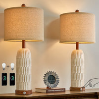 Oyears 3-Way Dimmable Touch Control Table Lamp Set Of 2 With Dual Usb A+C Ports For Bedroom Living Room 26.5 Modern Farmhouse
